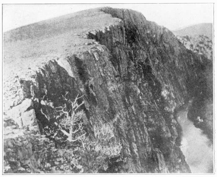 The river here makes a great circular bend around an almost perpendicular wall of rock that I judged to be about a half-mile high. Across the river from this was a beautiful valley sloping gradually up into the mountains and in it were many hot springs varying in temperature from barely tepid to boiling hot.