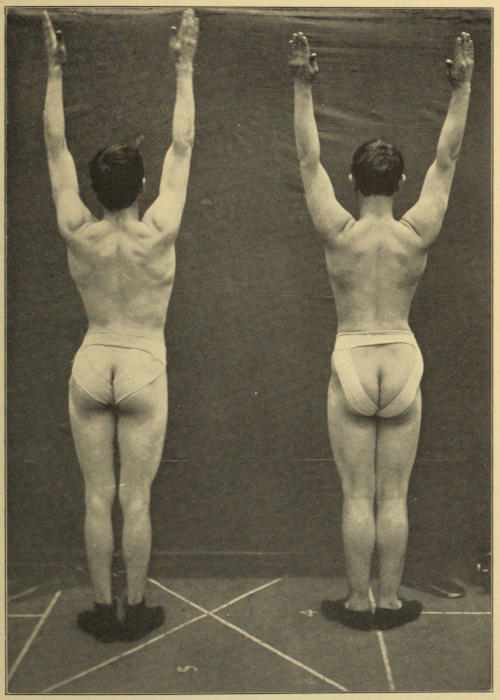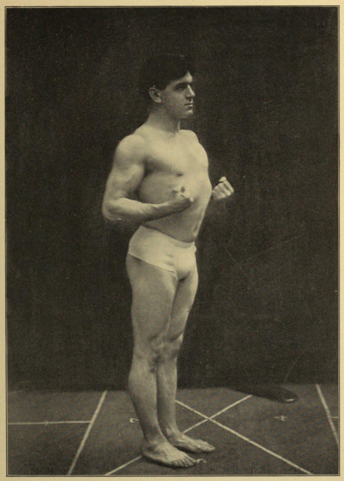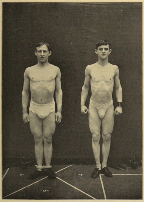 Among the group of University athletes, the photographs of Stapleton, facing pages 328 and 366, show the muscular development of a typical athlete endowed with more than the usual amount of muscular tissue. These two photographs of Stapleton were taken in April, after the subject had been for several months on a low proteid diet. There is in the photographs certainly no suggestion of any loss of muscle tissue, and no evidence of physical weakness. Stapleton, as has been previously stated, was an expert in wrestling and events of that character, for which his heavy muscular build well fitted him.