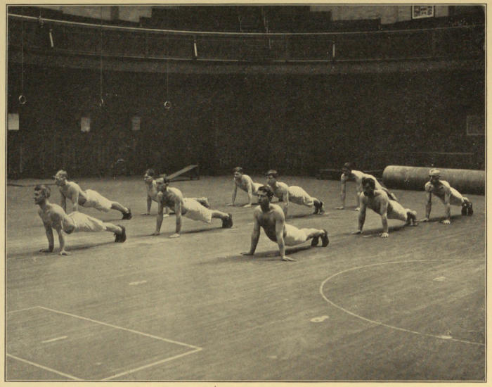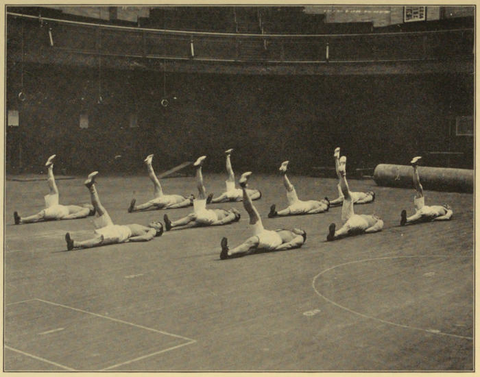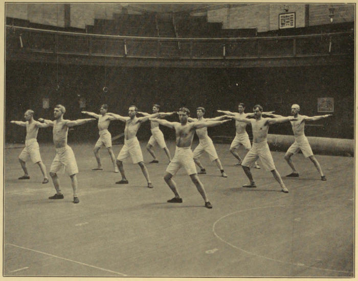 Dr. William G. Anderson, Director of the Yale Gymnasium, with the co-operation of his assistants, has rendered valuable aid in looking after the physical development of the men[vi] under experiment, in arranging for frequent strength tests, as well as in prescribing the character and extent of their work in the Gymnasium. The greater portion of the training of the soldiers was under the personal supervision of William H. Callahan, M.D., Medical Assistant at the Gymnasium, while Messrs. William Chase, Anton Muller, John Stapleton, and H. R. Gladwin, Assistant Instructors in the Gymnasium, led the drills and looked after the actual muscular training of the men.