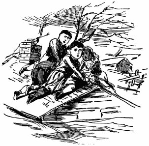 “When the water rose,” she said, “we were all at home. It drove us from floor to floor, and we had just reached the roof when the house started. It went whirling toward the bridge, struck it, and went down. Mother, my little sister and I all caught on another roof that was just above the water, but father and my little brother went down with the house. Father’s face was towards us as he sank. He shouted goodby, and that was the last. Just then my little sister lost her hold and she followed father and brother. Then mother called out that she was going to drown. I got to her and raised her head out of the water. My head rested on a sawlog and a board protected me from the other timbers. Some rescuers came running down the9 bridge and saw us. I made them take mother out first and meantime I struggled to get out of the timbers, but they closed in on me.