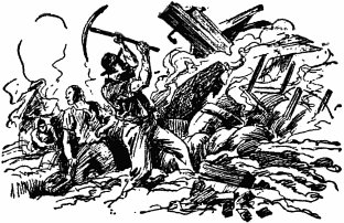 As has been written dynamite had added its horror to the sixty-acre mass of wrecked buildings, railroads, streets and human beings that lie above the railroad bridge. A half dozen times on the afternoon of June 6, the heavy thunder of the huge cartridges was heard for miles around, and fragments of the debris flew high in the air, while at a distance the crowd looked on in dreadful sorrow at the thought of the additional mangling that the remains of the hundreds of bodies still buried in the mass were bound to undergo. There was little complaint, however, even on the part of those who have relatives or friends buried there, for the work of the past few days has shown how futile was the idea that anything but an explosive could effectually break up and remove the compact mass.
