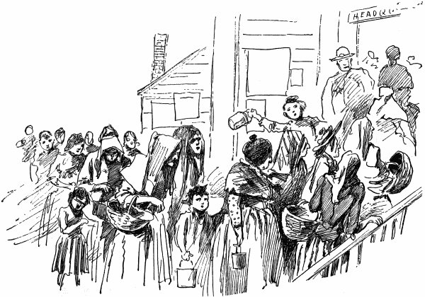The yard was filled with boxes and barrels of bread, crackers, biscuits and bales of blankets. The people crowded outside the yard in the street, and the provisions were handed to them over the fence, while the clothing was thrown to them from the upper windows. There was apparently great destitution in Kernsville.