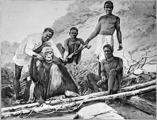 Another thing which is necessary is to entertain or amuse them in some way, otherwise they become despondent and gloomy. It is believed by those who are familiar with these apes that loneliness or solitude is a fruitful cause of death. This is especially so with the gorilla. I have a photograph of one that was kept by a trader on the coast of Africa for nearly three years. She was devoted to him, and was never content when not in his company. His business required him to make a journey of a few days to the interior. He left the gorilla at his place on the coast where she had lived up to this time. The day after he departed she became morose and fretful, and within a few days died without any apparent cause except pining. This was observed by natives and by white traders, and her death has always been ascribed to the cause assigned. She was well known to all the traders on that part of the coast, and has been regarded as one of the best specimens known. She is the only one that I have ever known to become devoted to a human being.