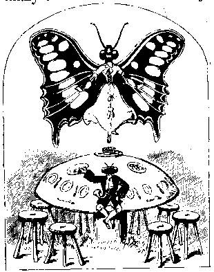 “My dear,” cried the Butterfly across the table to the Grasshopper, “I hope you are attending to your friends there. See that you give them enough to eat, and plenty of mountain-dew to drink.”