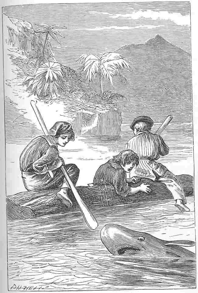All that night and the whole of the following day we plied our paddles in almost total silence and without halt, save twice to recruit our failing energies with a mouthful of food and a draught of water. Jack had taken the bearing of the island just after starting, and laying a small pocket-compass before him, kept the head of the canoe due south, for our chance of hitting the island depended very much on the faithfulness of our steersman in keeping our tiny bark exactly and constantly on its proper course. Peterkin and I paddled in the bow, and Avatea worked untiringly in the middle.