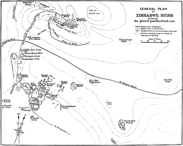 IN preparing this detailed description of the ruins of Great Zimbabwe—the first given to the world in modern times—the author has aimed at permitting the actual ruins themselves to relate their own story of their forgotten past unweighted by any consideration of the many traditions, romances, and theories which—especially during the last decade—have been woven concerning these monuments.