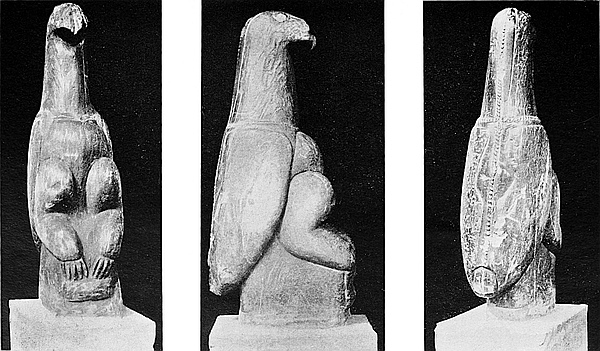 The recent examination of the district surrounding the ruins now shows the Ruins’ Area to be far larger than either Mr. Theodore Bent (1891) or Sir John Willoughby (1892) supposed. Instead of the area being confined to 945 yds. by 840 yds., it is now known to be at least 2 miles by 1¼ miles, and even this larger limit is by no means final, as traces of walls and of walls buried several feet under the veld have been discovered, not only in Zimbabwe Valley, but in the secluded valleys and gorges and on the hillsides which lie a mile and even two miles beyond the extended xviarea. Huge mounds, many hundred feet in circumference, with no traces of ruins, covered with large full-grown trees and with the remains on the surface of very old native huts, on being examined have been found to contain well-built ruins in which were unearthed small conical towers, gold ornaments, a few phalli, and in one instance a carved soapstone bird on a soapstone beam 4 ft. 8 in. high, which is more perfect and more ornate than any other soapstone bird on beam yet found at Zimbabwe. The examination of such spots and of all traces of walls which lie at the outer edge of the extended Ruins’ Area would, even with a large gang of labourers, occupy almost a lifetime.