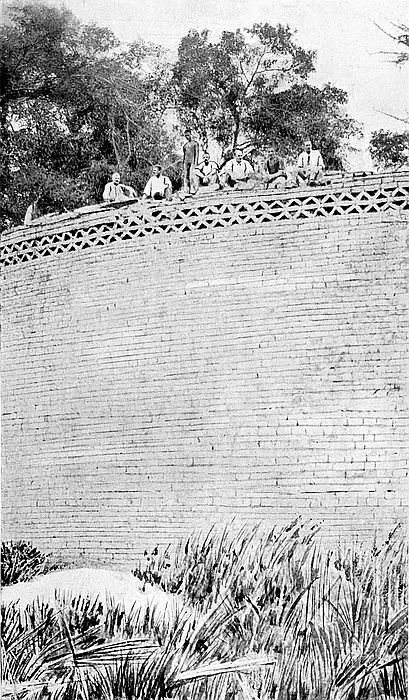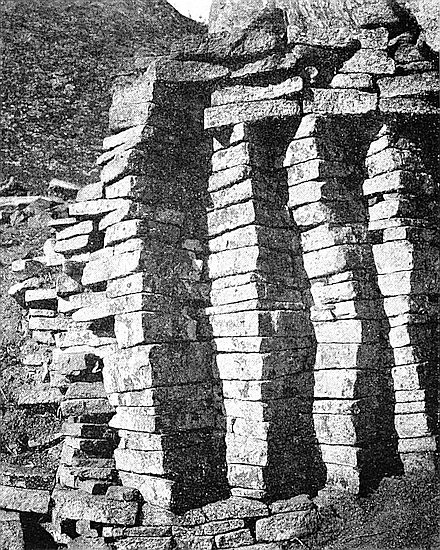 A remarkable discovery was made here of distinct traces of granite cement dadoes, 7 ft. high, round the interior faces of the walls of this enclosure. In some other enclosures the remains of dadoes can still be seen.