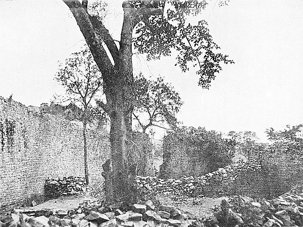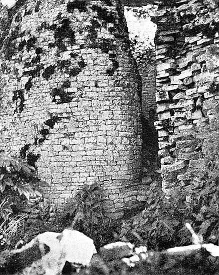 The small conical tower in this enclosure has during the last ten years been seriously damaged by the large trunk of a tree pushing over the summit of the cone. Photographs of this small tower taken in 1891 show that it was then almost intact.