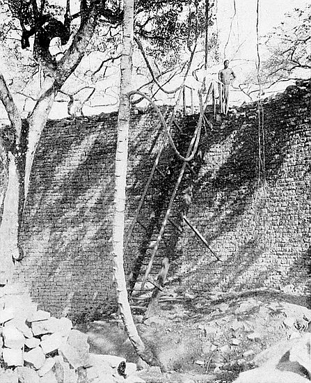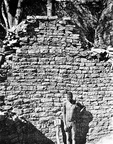 The oldest walls of the temple for which great antiquityxxiv may be claimed are—the main east wall from north to south, the Conical Tower, the Platform, portions of the inner wall of the Parallel Passage (reconstructions are present here), and some adjoining walls, and some buried walls and foundations, and possibly some other walls on the south side, concerning which some doubt exists, as also the west wall of the West Passage, a well-built structure which once was extended at either extremity. As to the question of obviously much later walls, this is involved in the following section of this preface.