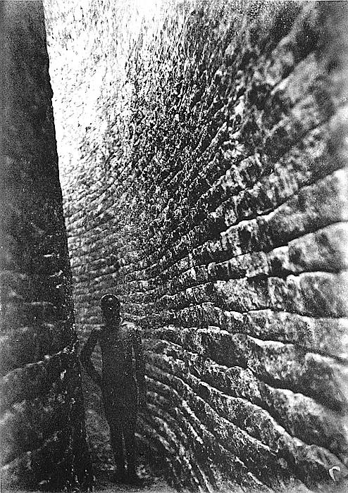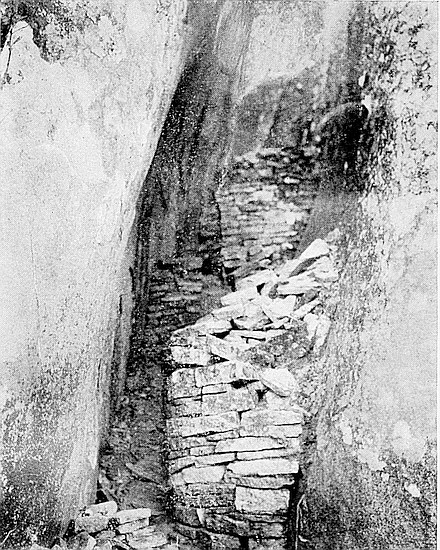 In 1902 the floor of the North Entrance to the temple was exposed to a depth of 5 ft. below the surface, as shown in Mr. Bent’s book (p. 106), while a flight of steps in perfect condition leading up to the entrance from the exterior was discovered at a depth of 9 ft. below the old surface. This entrance, showing a bold conception and admirable construction, is now considered as one of the principal show features at Zimbabwe. Further, it is the oldest form of entrance and steps as well as the finest of any yet discovered in Rhodesia. A quantity of gold was found on the floor and steps of this entrance, which were once covered with fine granite cement, also a few true phalli.