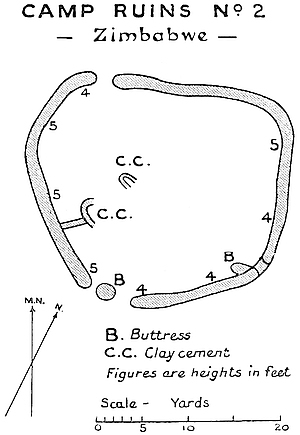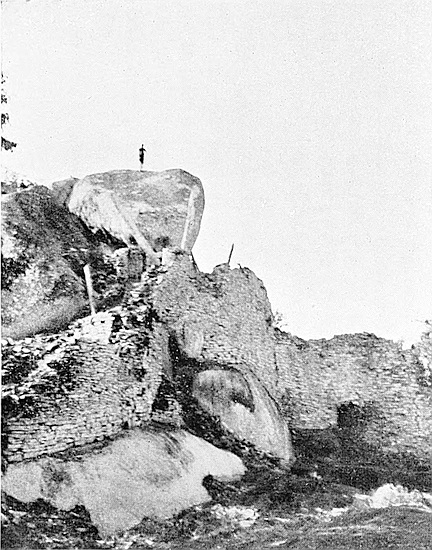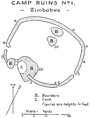 All the walls of the Elliptical Temple are not ancient; that is, not ancient in the sense applying to the suggested Sabæo-Arabian occupation of Rhodesia and also to that of the Solomonic gold period. The evidences pointing to this conclusion, and now for the first time available, are so obvious and general, and the ocular demonstration so positive, that one of the many popular myths concerning Great Zimbabwe must, even at the risk of committing a vandalism on cherished romantic theories and beliefs, go by the board. The writer prefers that the ruins should tell their own story, and this can now be read in the walls, in the débris heaps, and in the relics and their associated “finds” and locations.
