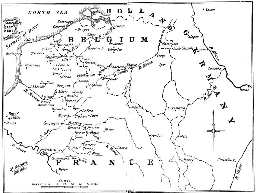 The chief point that seems to call for explanation in the case of this work is the condensation of a very long story into a very brief space. Economy demands that the book containing the history of the Buffs during the momentous years from 1914 to 1919 shall not stretch its length beyond a certain limit, and it is difficult to pack the stories of eight fighting battalions for four years into the required space; yet it is feared that the unavoidable price of a more lengthy volume or volumes might perhaps be prohibitive in the cases of many individuals deeply interested in the regiment.