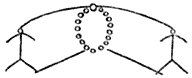 Of their appearance at a dance Colonel Dalton states:5 “Forming a huge circle, or rather coil, they hooked on to each other and wildly danced. In their hands they sternly grasped their weapons, the long stiff bow and arrows with bright, broad, barbed heads and spirally-feathered reed shafts in the left hand, and the gleaming battle-axe in the right. Some of the men accompanied the singing on deep-toned drums and all sang. A few scantily-clad females formed the inner curl of the coil, but in the centre [576]was the Choragus who played on a stringed instrument, promoting by his grotesque motions unbounded hilarity, and keeping up the spirit of the dancers by his unflagging energy. Their matted back hair was either massed into a chignon, sticking out from the back of the head like a handle, from which spare arrows depended hanging by the bands, or was divided into clusters of long matted tails, each supporting a spare arrow, which, flinging about as they sprang to the lively movements of the dance, added greatly to the dramatic effect and the wildness of their appearance. The women were very diminutive creatures, on the average a foot shorter than their lords, clothed in scanty rags, and with no ornaments except a few tufts of cotton dyed red taking the place of flowers in the hair, a common practice also with the Santāl girls. Both tribes are fond of the flower of the cockscomb for this purpose, and when that is not procurable, use the red cotton.”