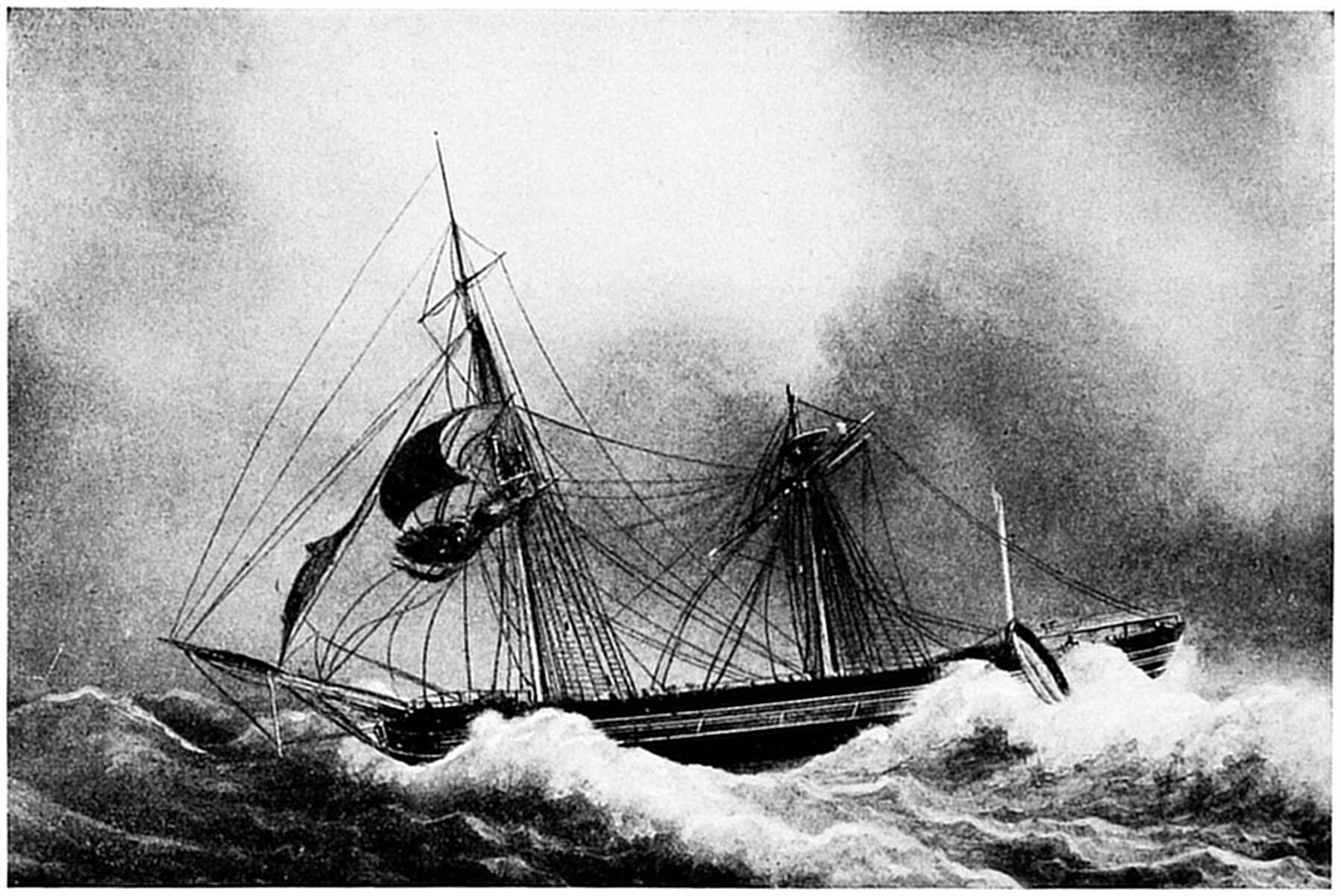 On this tragic voyage she carried a small crew, Captain W. L. Cazneau, a mate, four sailors, and a cook who was a native Indian. No mention is to be found of any ill omens that forecasted disaster, such as a black cat, or a cross-eyed Finn in the forecastle. Two passengers were on board, “Mr. J. S. Hunt and a negro girl nine years old.” We know nothing whatever about Mr. Hunt, who may have been engaged in some trading “adventure” of his own. Perhaps his kinsfolk had waved him a fare-ye-well from the pier-head when the Polly warped out of her berth.