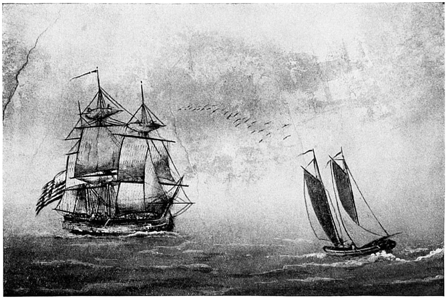 Four days out from Boston, on December 15, the Polly had cleared the perilous sands of Cape Cod and the hidden shoals of the Georges. Mariners were profoundly grateful when they had safely worked offshore in the winter-time and were past Cape Cod, which bore a very evil repute in those days of square-rigged vessels. Captain Cazneau could recall that somber day of 1802 when three fine ships, the Ulysses, Brutus, and Volusia, sailing together from Salem for European ports, were wrecked next day on Cape Cod. The fate of those who were washed ashore alive was most melancholy. Several died of the cold, or were choked by the sand which covered them after they fell exhausted.