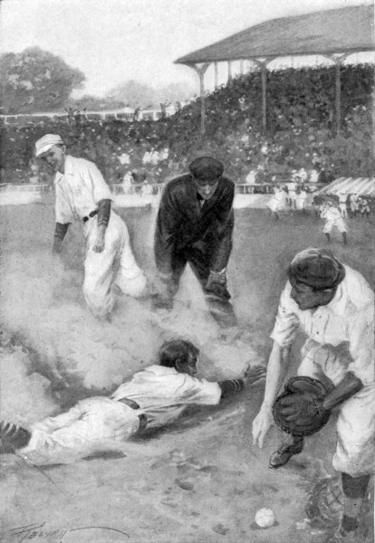 But Chub had made up his mind to go on, and he went. He made his steal on the first ball thrown to the new batter and, although catcher threw straight and fast to second-baseman, Chub slid around the latter and reached the bag. Then, while the cheers broke forth again, he got up, patted the dust out of his clothes, and took a fresh lead. The pitcher eyed him darkly for a moment and then gave his attention to the batsman. Crack! Ball and bat met and the short-stop ran in to field a fast grounder, and as he ran Chub flashed behind him. Gathering up the ball, short-stop turned toward third, saw that he was too late, and threw to first, putting the batsman out by the narrowest of margins. “Two out!”