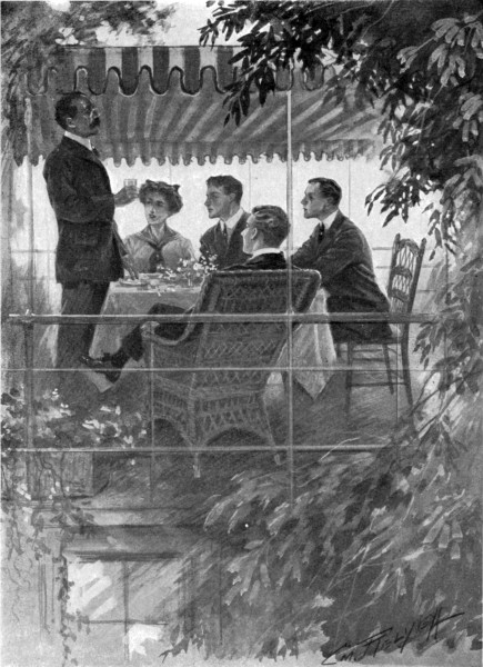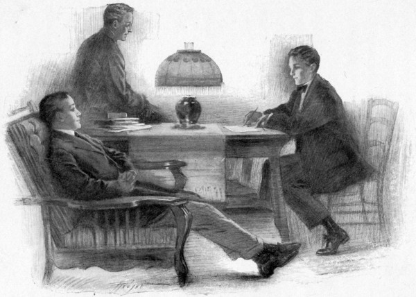 “Oh, nothing,” echoed Dick, softly, and, joining arms, they marched twice around the deck in the moonlight, whistling Mendelssohn’s “Wedding March” badly out of tune, and grinning like a couple of Jack-o’-lanterns when they passed the window. Chub, frowning and muttering, stowed the photograph at the bottom of his suit-case.