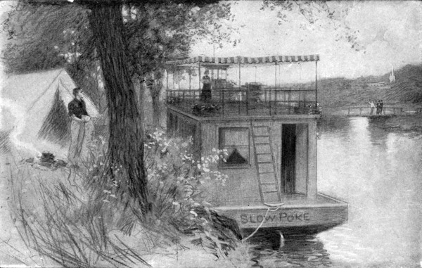 I might tell, at the cost of many details and much space, of the week that followed, but the story is really finished at this moment. It was a jolly week, the jolliest sort of a week, and every one, even Dr. and Mrs. Emery, enjoyed it thoroughly. And every one, Dr. and Mrs. Emery not the least, regretted the arrival of the day of departure. Good-bys were said, promises of future meetings made, and, with the doctor and Mrs. Emery and Harry waving from the landing, and Snip barking farewell, the Slow Poke moved away on the final stage of her journey. The boys watched the group on the wharf until a point of land hid it from view.