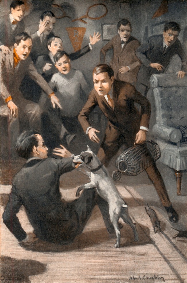 “What will happen to the pretty little boy and his nice clean trousers and his beautiful red jersey?” continued another of the quartette, adopting the first speaker’s sing-song style. “Oh, please, teacher, I’d rather not say! It will be a perfect shame, will it not?”