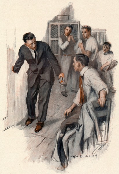 Dan’s first chance at the willow came in the next inning, after Millener, first man up, had hit a hard liner that first baseman was unable to handle. I wish I could say that Dan faced the enemy’s pitcher unflinchingly and drove out a three-bagger. But truth compels me to narrate the fact that Dan did nothing of the sort. It was his first appearance in a big game and he was distinctly nervous; and Herring and Patterson saw it and simply toyed with him. He aided in his own defeat by knocking two flies in succession, and then reached out for a wide ball and walked dejectedly back to the bench. He found the whole team smiling, not maliciously, but with a sort of “We’ve-all-been-there” expression that was rather comforting to him and helped him hold his head up again.