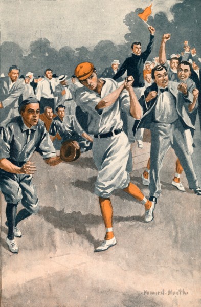 This time the long fly was caught by Watkins and relayed to the plate in time to cut off the supposititious runner. Meanwhile “Midget” Green, a “Prep” of twelve years, whose chief ambition outside of school hours was to chase balls, was scrambling over the wall. “Chesty” Harris watched morosely.