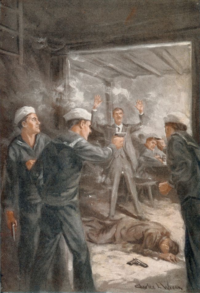 “Get back home as soon as I can,” replied the Captain unhesitatingly, “and find another ship. She’ll be steam this time, I guess. And she’ll have a gun and a gun-crew aboard her, and all I’m asking is that one of those dirty ‘fishes’ will poke her pipes up where I can see ’em!”