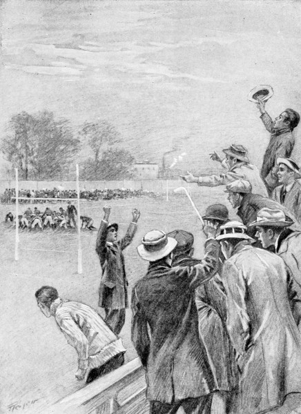 It was all over shortly after Hinkley had kicked goal, and the team was borne off the field on the shoulders of as joyously mad a throng of fellows as ever yelled themselves hoarse over a victory.