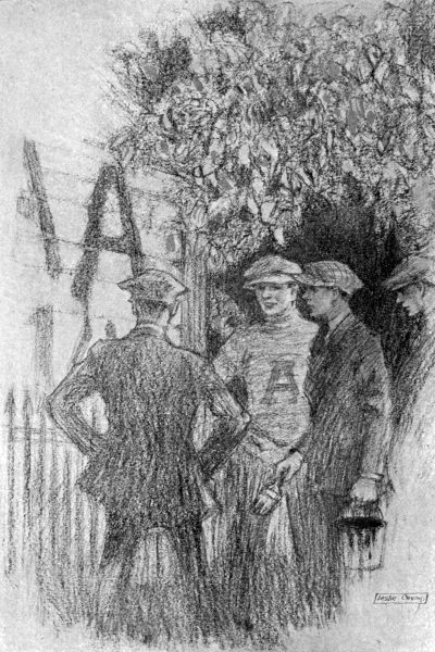 At a few minutes past three o’clock on a particularly warm afternoon in late September of last year three boys removed themselves and their luggage from the top of a Fifth Avenue stage in New York City and set forth eastward along Forty-second Street. Although decidedly dissimilar in looks and slightly dissimilar in build, they showed, nevertheless, a certain uniformity of carriage and action and, to a lesser degree, of attire. There was nothing strange in that, however, since, for the last two years, at least, they had spent nine months of the twelve in the same place, at the same pursuits and under the same discipline. The likeness of attire was less in material and color than in a certain tasteful avoidance of the extremes. Joe Myers and Martin Proctor wore blue serge and Bob Newhall a brownish-gray tweed, and in no case was the coat snugged in to the figure or adorned[2] with a belt in conformity to the dictums of the Rochester school of sartorial art. Joe and Bob wore gray-and-gold ribbons about their straw hats, Martin a plain black. Each of the three carried a brown leather suitcase, and, had you looked closely, you would have discovered on each bag, amongst numerous other labels, a gray triangle bearing two A’s in gold snuggled together in a pyramid-shaped monogram.