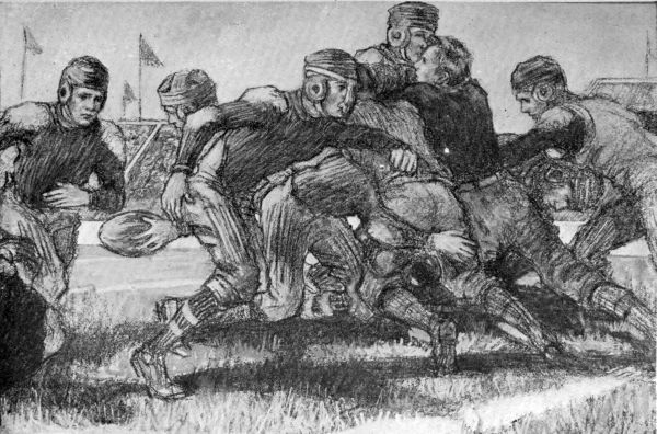But to speak too much of McNatt would be unfair to the rest: to Captain Joe Myers, and to Gil Tarver, who ran the team as never before, and to Bob and Martin and, finally, Willard, who, although he didn’t see service until the third period started, played a wonderful game at left half. That run that started on Alton’s twenty-eight yards and ended on Kenly’s seventeen was made by Willard, and Willard it was who, near the last of the contest, took Tarver’s long heave down the field and added another dozen yards to it, so preparing the way for McNatt’s final touchdown. It was Alton’s day all through, and it is doubtful if there was ever a more stunned and disappointed team than Kenly when the last whistle blew and the score of 26 to 6 stared down at her from the board. That single touchdown afforded her scant comfort, it seemed.