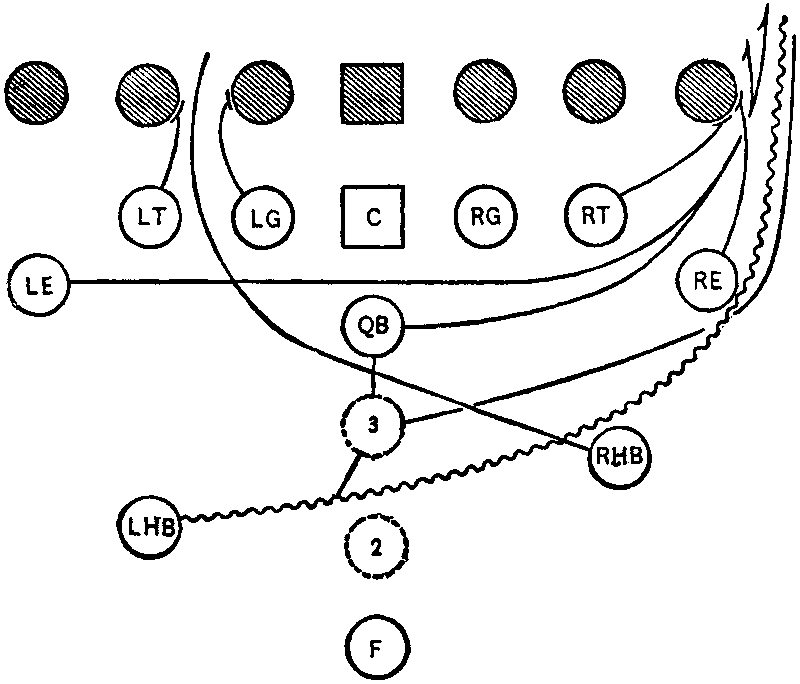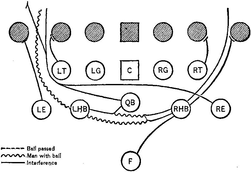 There was no mistake! It was left half's ball on a double pass for a run around right end! The line-up was within eight yards of the east side line. The play was the third of the second sequence, in which Joel with the other backs had been well instructed, and its chance of success lay in the fact that it had the appearance of a full-back punt or a run around the long side of the field. Joel leaned forward, facing the left end. Blair crept a few feet in.