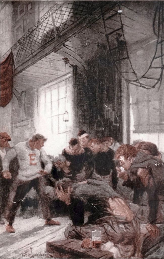 When the knock came Ted was slumped on his spine in the Morris chair, the green-shaded lamp beside him and a magazine propped on his chest. It was Saturday night and study was not imperative, for which he was grateful. The baseball game with Prospect Hill in the afternoon had been a hard one, and the victory—for Warwick had won in the tenth—had left him rather tired, and he had passed up a lecture in the school auditorium in favor of rest and solitude at home. Which is why the knock on the door brought a sigh and a frown. Of course, he might remain silent, but the light shining through the transom would be a give-away, and the caller might be Trevor Corwin with his everlasting stamp album: Trev was a sensitive kid and easily hurt. So Ted laid down his magazine and said “Come in!” in no very enthusiastic tone. To his relief, the visitor was Hal Saunders.