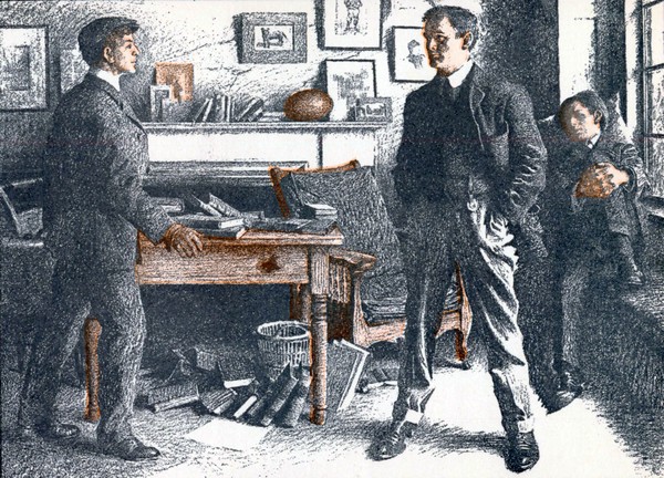 “All right,” he answered quietly. “I’ll see what I can do.” He went to the window and stood there a moment looking out over the sunlit landscape and peeling off a pair of very proper tan gloves. Harry and Bert exchanged glances. Presently he turned and, tossing his gloves aside, sat down on the window seat, took one knee into his hands, and looked about the room with frank interest.