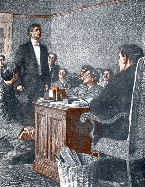 He was interrupted by a knock at the door. The two exchanged questioning glances, and then Bert called “Come in!” The door swung open and a tall, well-built youth entered, set down a suit case, and looked inquiringly from Harry to Bert.