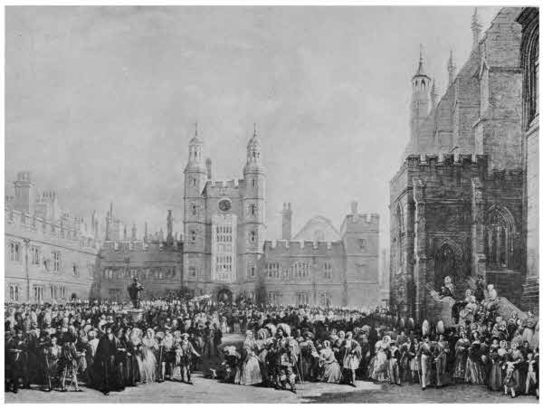In addition to many of its associations being connected with glorious chapters of English history, the old quadrangle, chapel, and playing fields possess a peculiar charm of their own, due to a feeling that the spirit of past ages still hovers around them. There is, indeed, a real sentimental pleasure in the thought that many of England’s greatest men laid the foundations of brilliant and successful careers amidst these venerable and picturesque surroundings. No other school can claim to have sent forth such a cohort of distinguished figures to make their mark in the world; and of this fine pageant of boyhood not a few, without doubt, owed their success to the spirit of manly independence and splendid unconscious[2] happiness which the genius of the place seems to have the gift of bestowing.