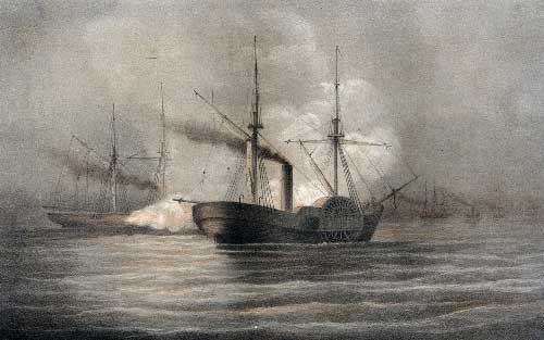 Fredericksburg, iron-clad, four guns, Captain Glassel.
