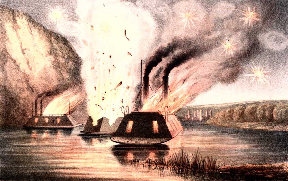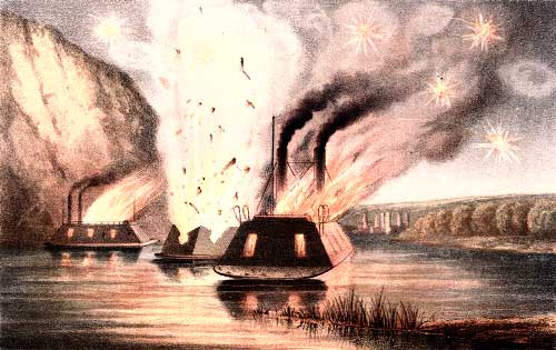 The Blowing up of the James River Fleet, on the night of the Evacuation of Richmond.