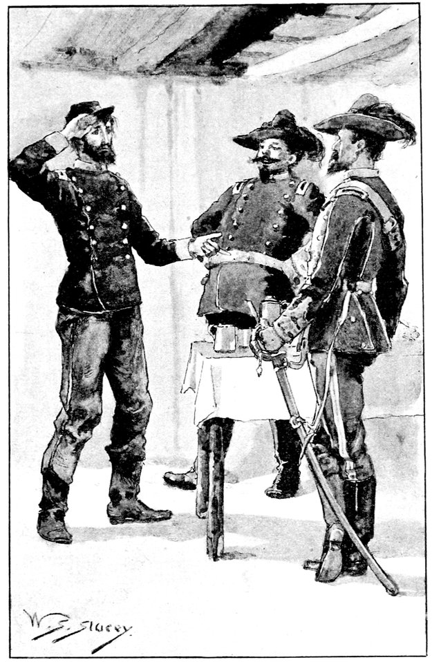 For an instant the colonel paused. It appeared that one chance more was to be given him. Then his good angel turned away and left him, and a black lie dropped from his lips. His voice became dangerously calm. ‘I do not know that I am bound to make explanations to you, Captain Peters,’ he said; ‘but I have done so out of consideration for your extreme youth and inexperience. It may be enough for you to know that I carry the provost-marshal’s order, countersigned by General Shields, and dated 1 A.M. to-day, to hang these fellows as soon as possible after their capture, should I succeed in taking them; and that document, sir, is not bogus like the one you have just read. Now, for the last time, will you obey orders?’