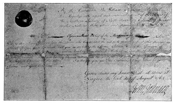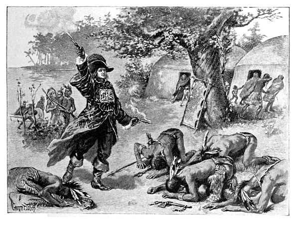 By this time, Nicolet had his doubts about meeting Chinese at Green Bay. As, however, he had brought with him "a grand robe of China damask, all strewn with flowers, and birds of many colors," such as Chinese mandarins are supposed to wear, he put it on; and when he landed on the shore of Fox River, where is now the city of Green Bay, strode forward into the group of waiting, skin-clad savages, discharging[31] the pistols which he held in either hand. Women and children fled in terror to the wigwams; and the warriors fell down and worshiped this Manitou (or spirit) who carried with him thunder and lightning.