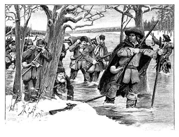 After staying at their fort for a few weeks, they managed to cache (secretly bury) the greater part of their goods; and then set out on a hunt with their Huron neighbors upon the headwaters of the Chippewa River. Unusually severe weather set in, and a famine ensued, for there was no game to kill, and the snow was so deep that they could hardly travel.