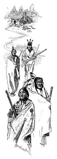 The "war bonnet," worn by the leading warriors, was a headdress of skins and feathers, which trailed down the back and often to the ground, and was highly picturesque. Add to this, the general habit of tattooing, or, on ceremonial occasions, of fantastically, often hideously, painting the face and neck and breast in blue, black, and red, and one can well imagine that an Indian village, on a fête day, or at other times of popular excitement, presented a striking scene.