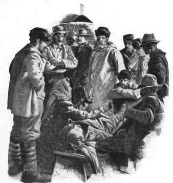 He yielded to her imploring eyes and followed grudgingly down the back stairs and into the night, wondering the while at his own weakness. She led the way, bareheaded, heedless of the cold. They were in that ill-favored district he had penetrated earlier in the day, but if it had been offensive then it was doubly so now, with its muffled sounds of debauchery and wickedness. She paused finally, fumbling at the door of one miserable structure, whereupon he growled:
