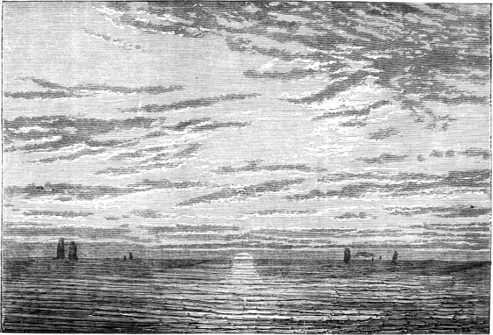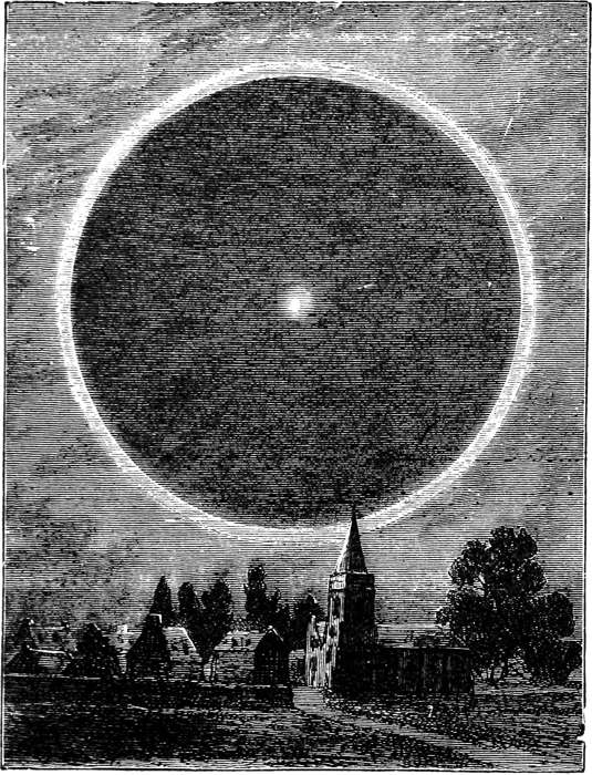 Consider, for instance, the real meaning of sunrise. The orb seemingly rising above the horizon, but, in reality, at rest, is the source of all the glory which is spreading over the fair face of earth. The atoms of that remote body, vibrating with intensest activity, send forth in all directions ethereal waves, and of these relatively but a very few, about one in two thousand millions, fall upon our earth, producing the phenomena of sunlight.[10] They have been little more than eight minutes on the road, but in that short time they have traversed more than 90,000,000 of miles. Were they to fall directly upon our earth, we should see few of the splendours which attend the uprising of the sun. The deep air clothing our earth receives the onward rushing waves, and reflects them in all directions. To use Biot's simile, "The air is a sort of brilliant veil, which multiplies and diversifies the sunlight by an infinity of repercussions." Nor is the wonder of the scene, or its effect in filling the mind with solemn and poetic thoughts, diminished—on the contrary, it is enhanced—by the recollection that the gradually growing glory of day is brought about by the slow turning of the mighty earth,—
