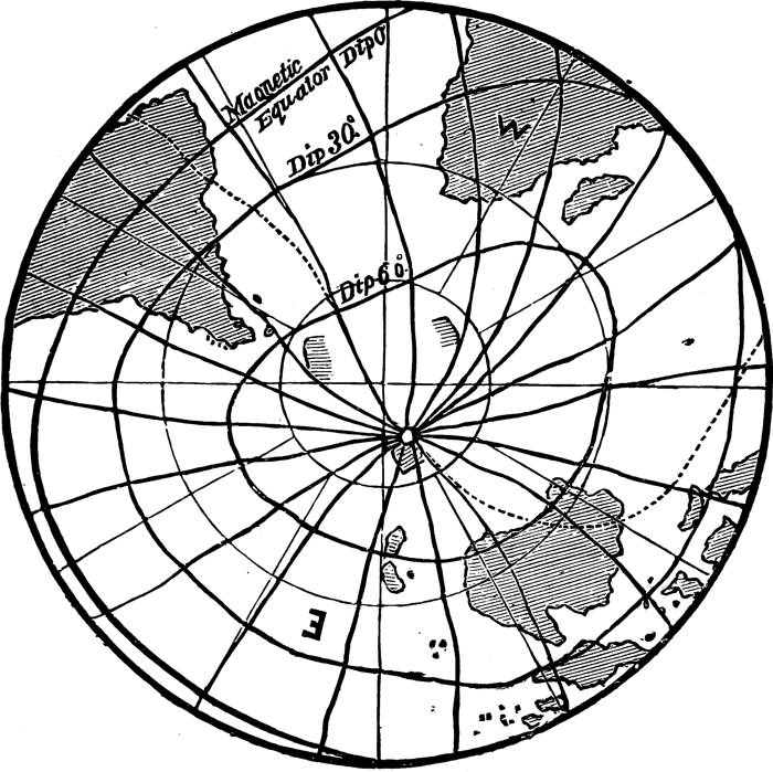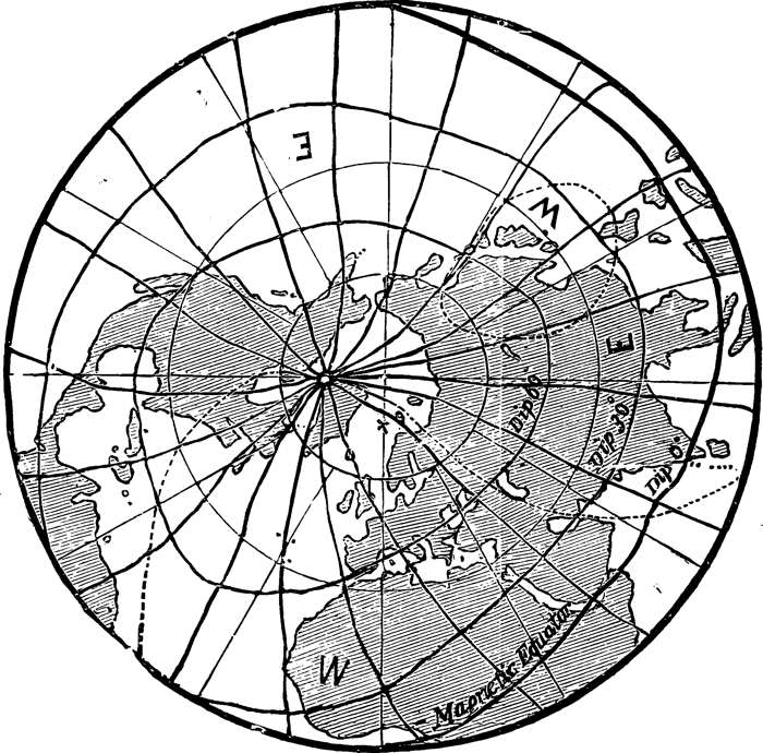 This introduces another point which seems worth noticing. At present the ship Argo is never seen from any part of the earth's surface as pictured in fig. 39. When due south, the position whence in all northern latitudes the constellation is most favourably seen, the ship is always tilted up at the stern: one would say, in more nautical phrase, she is down by the head, if the ship had any fore-part; but from time immemorial she has been a half-ship only. Some 4,000 years ago, however, Argo stood nearly on an even keel when due south. Again, it is to the mighty gyrational motion of the earth that we have to look for the cause of the great[258] change in the apparent position of the ship. The sphere of the fixed stars has remained all the time unchanged, or very nearly so, but the direction in which the earth's axis of rotation points has swayed round (much as the axis of a reeling top sways round) through about one-sixth part of a complete gyration.