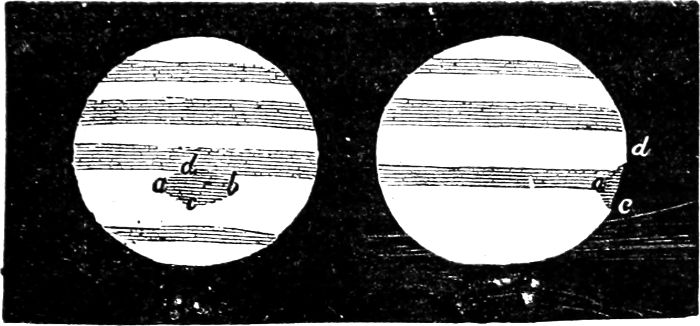 [15] Attention has lately been called, by the astronomers of the Washington Observatory, to the fact that the statement usually made in our books of astronomy, that Sir W. Herschel's latest determination of Saturn's rotation period was 10h. 29m., is incorrect. His only determination of the period gave 10h. 16m. 44s. for the Saturnian day.