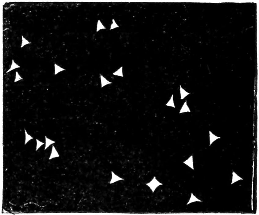 As another illustration of the method I have described, I give the constellation Pegasus, or, as it was sometimes called, the Half-horse. I do not assert that fig. 41 presents a very well shaped steed, any more than that in fig. 40 a lady of exquisite proportions is pictured. But one can perceive how the stars suggest the idea of a horse in one case, and of a human figure with upraised fastened arms in the other. It is commonly stated that Pegasus is one of the constellations showing no resem[267]blance at all to the figure associated with it. I think fig. 41 suffices to show that there is some slight resemblance at least.