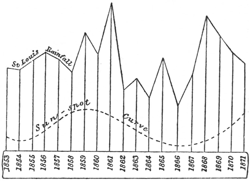 7 In 1860, a year of maximum sun-spot frequency, Cambridge won the University boat-race; the year 1865, of minimum sun-spot frequency, marked the middle of a long array of Oxford victories; 1872, the next maximum, marked the middle of a Cambridge series of victories. May we not anticipate that in 1878, the year of minimum spot frequency, Oxford will win? [This prediction made in autumn, 1877, was fulfilled.] I doubt not similar evidence might be obtained about cricket.