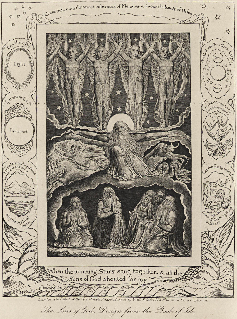 An evident, though probably unconscious, reminiscence of “When the morning stars sang together, and all the sons of God shouted for joy,” and like it for that extreme closeness to the inmost essence of things which the author of the Book of Job enjoyed in virtue of the primitive simplicity of his age and environment, and Blake through a childlike temperament little short of preternatural in an age like ours. It may be added, that although the pieces in Songs of Innocence and Songs of Experience are of very unequal degrees of poetical merit, none want the infallible mark of inspired poetry—spontaneous, inimitable melody.