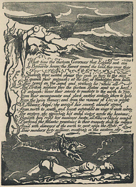 It is now time to speak of the literary works—“pictured poesy,” like the woven poesy of The Witch of Atlas—produced during this period. In 1789, the year of publication of the Songs of Innocence, the series opens with Thel. In 1790 comes The Marriage of Heaven and Hell; in 1793, The Gates of Paradise, The Vision of the Daughters of Albion, and America; in 1794, Europe, A Prophecy, and Urizen; in 1795, The Song of Los, and The Book of Ahaniah. In 1797 Blake seems to have written, or to have begun to write, the mystical poem ultimately entitled Vala, never published by him, and more than fifty years after his death found [30]in Linnell’s possession in such a state of confusion that it took Messrs. Ellis and Yeats days to arrange the MS., which they fondly deem to be now in proper order. It is printed in the third volume of their work on Blake. Tiriel is undated, but would seem to be nearly contemporary with Thel.