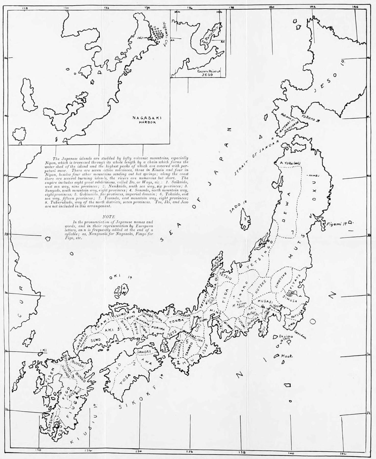 [164] This is exclusive of the central tract or imperial domain (consisting of five provinces), and also of the two island provinces of Iki and Tsushima. [See also Note A in the Appendix.—Edr.]